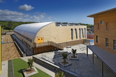 Gymnase Saint-Benoît, toiture cintrée Coverib — Photo H. Douris