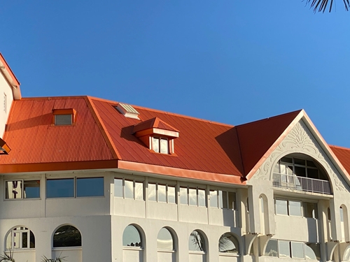 Hôtel Créolia — Surtoiture prélaquée, couleur orange — Photo DR